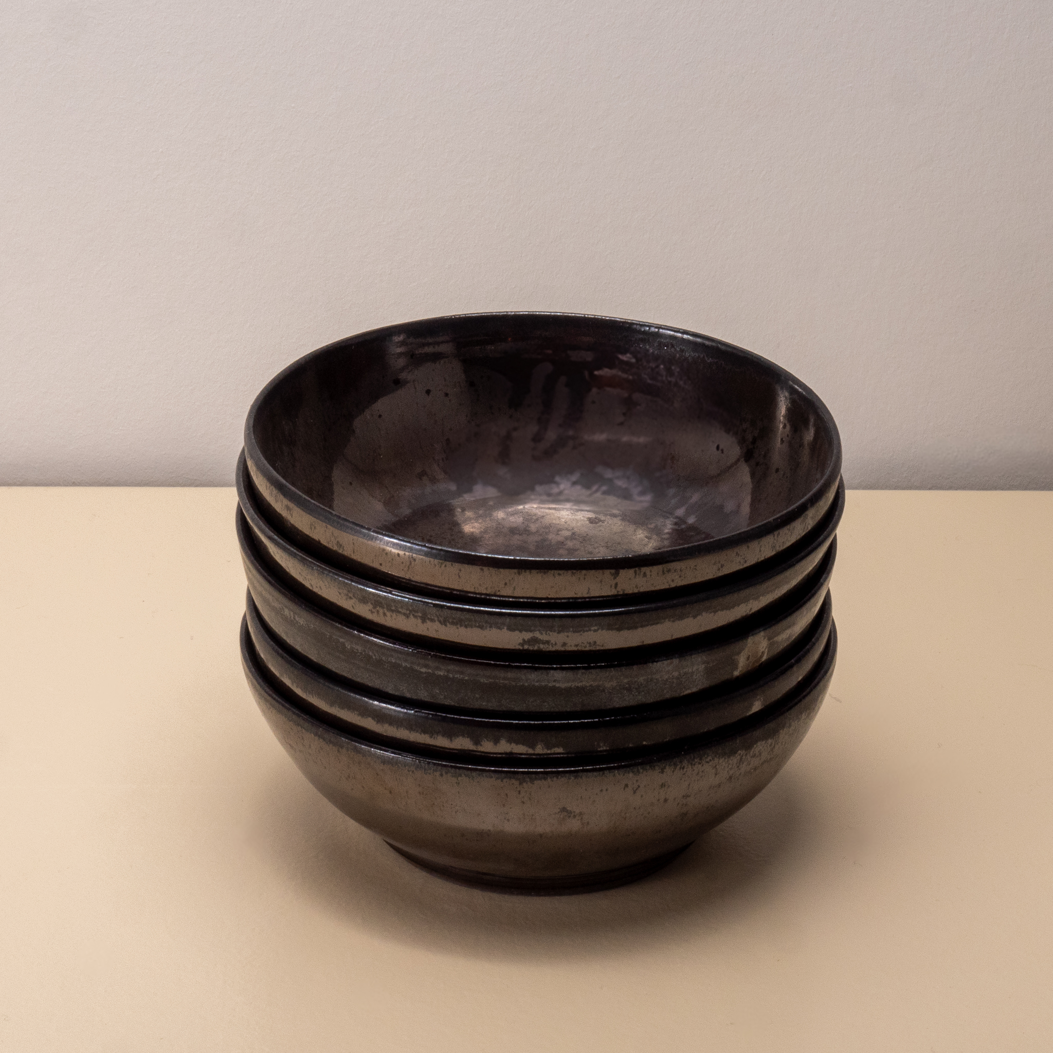 Produceret i mørk stentøj og glaseret med min sorte metal glasur.